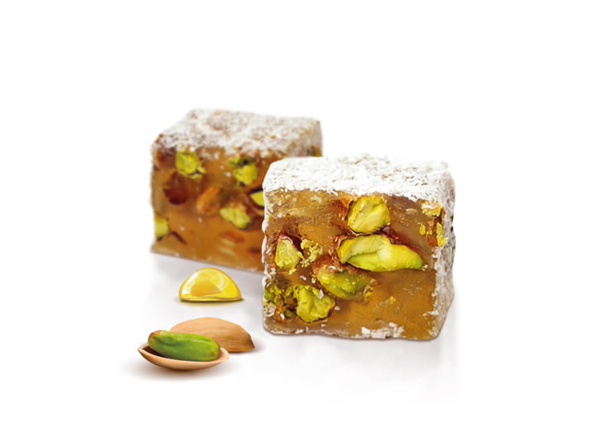 Hindistan Cevizi Kaplı Bal Aromalı Fıstıklı Lokum, balın doğal tatlılığı ile fıstığın yoğun lezzetini buluşturur. Üzerini kaplayan hindistan cevizi lokuma tropikal bir tat ve şık bir görünüm kazandırır. Günlük tüketimden misafir ikramlarına, özel günlerden hediyelik sunumlara kadar her an için keyifli bir tatlı alternatifidir.