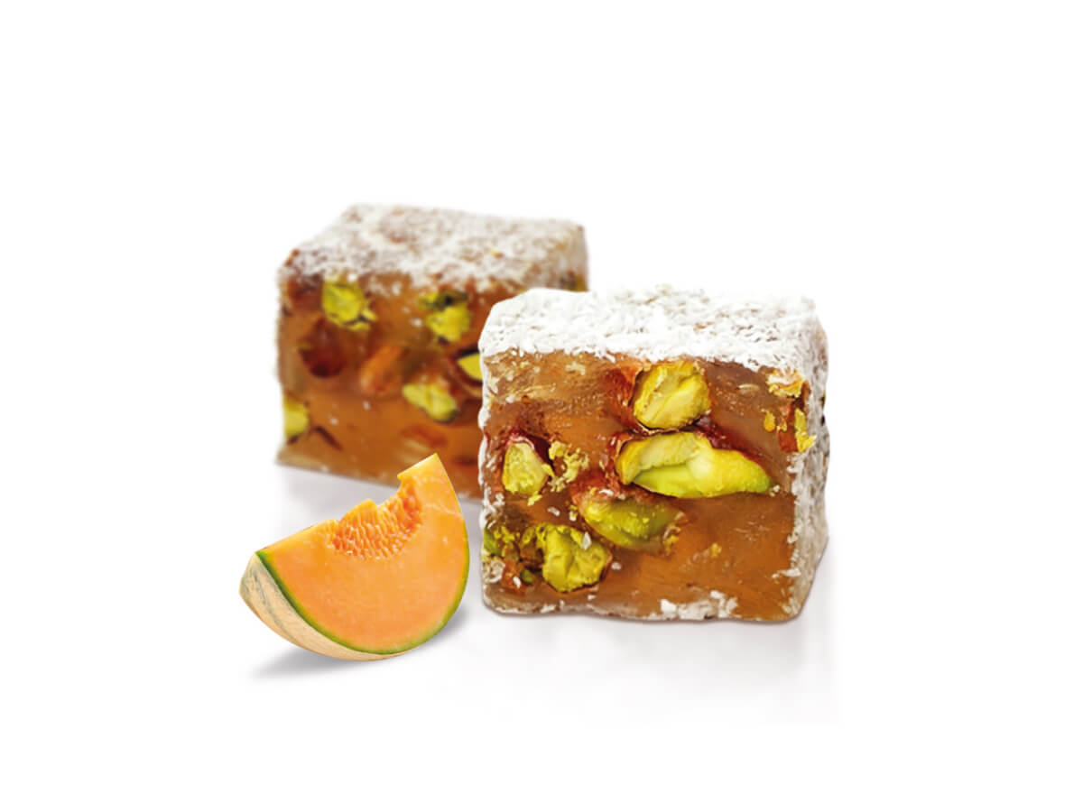 Hindistan Cevizi Kaplı Kavun Aromalı Fıstıklı Lokum, kavunun tatlı ve ferah aromasıyla fıstığın yoğun lezzetini buluşturur. Üzerini kaplayan hindistan cevizi, lokuma tropikal bir dokunuş ve şık bir görünüm kazandırır. Günlük tüketimden misafir ikramlarına, özel günlerden hediyelik sunumlara kadar her an için farklı ve lezzetli bir alternatiftir.