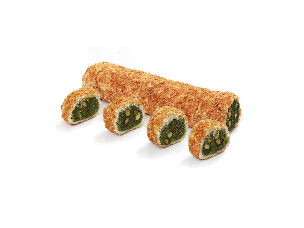 Kadayıf Kaplı Krem Fıstık Dolgulu Gurme Sultan Lokum, çıtır kadayıf kaplamasıyla krem fıstığın yoğun lezzetini buluşturur. Her lokmada kadayıfın hafif kavruk tadı ve fıstık kremasının yumuşak dokusu hissedilir. Geleneksel tatlara modern bir yorum katan bu özel lokum, özel günler ve şık ikramlar için mükemmel bir tercihtir.