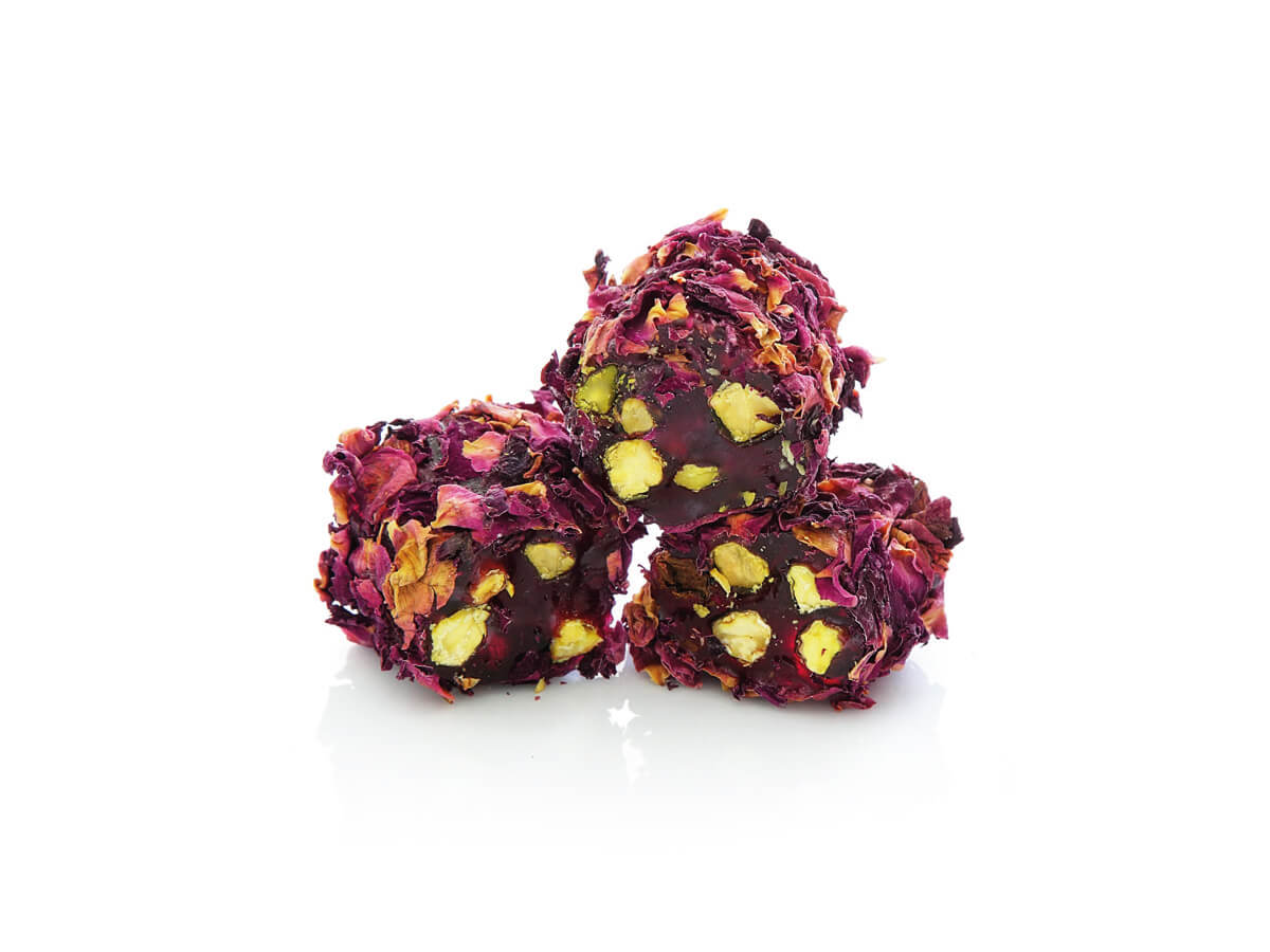 Antep Fıstıklı Gül Kaplı Nar Aromalı Şerit Lokum, narın ekşi-tatlı ferahlığını gül yapraklarının zarif aromasıyla birleştirir. İçindeki Antep fıstıkları her lokmada zengin bir lezzet sunar. Görünümüyle göz alıcı, tadıyla özel günler ve misafir ikramları için şık bir lokum çeşididir.