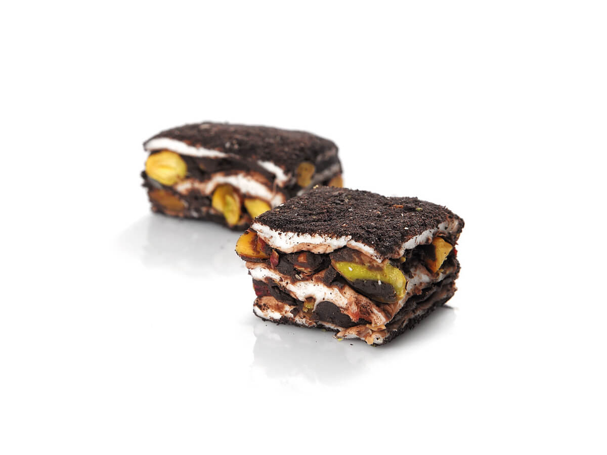 Kakaolu Bisküvili Fıstıklı Baklava Lokum, kakaonun yoğun aromasıyla Antep fıstığının taze lezzetini buluşturur. İçeriğindeki çıtır bisküvi parçaları her lokmada farklı bir doku ve zenginlik katar. Geleneksel baklava lezzetine modern bir dokunuş sunan bu lokum, özel günler ve misafir ikramları için ideal bir tercihtir.