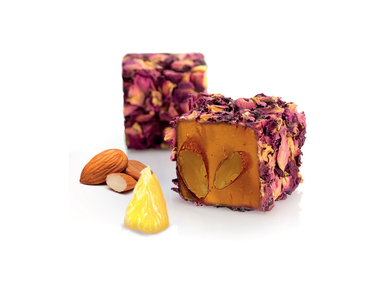 Gül Yaprağı Kaplı Karamel Aromalı Bademli Lokum, karameli andıran yoğun tatlı aromasıyla bademin doğal lezzetini buluşturur. Üzerini kaplayan gül yaprakları ise lokuma zarif bir koku ve göz alıcı bir görünüm kazandırır. Özel günler, misafir ikramları ve hediyelik sunumlar için şık bir tatlı alternatifidir.