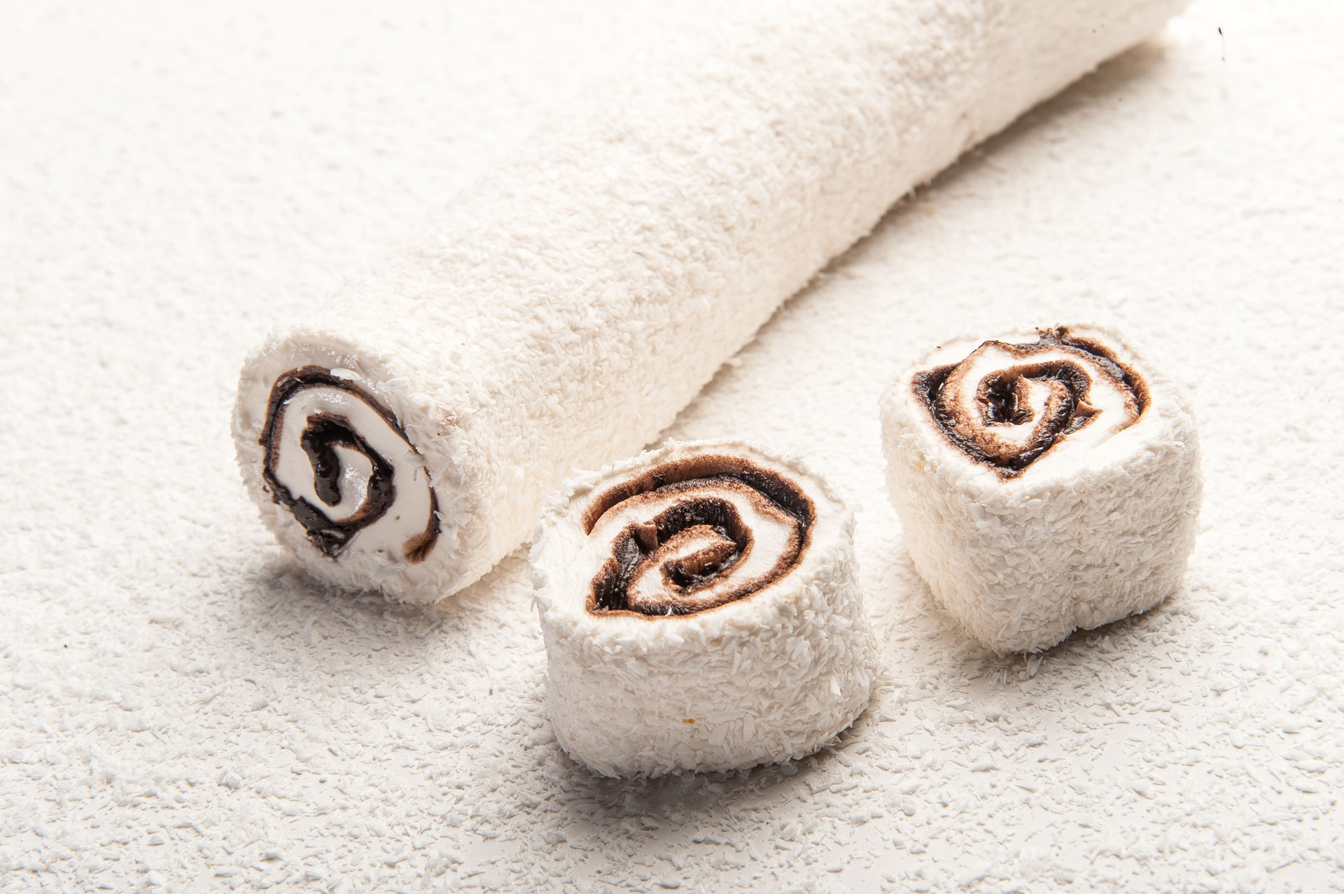 Hindistan Cevizi Kaplı Çikolatalı Sultan Lokum, çikolatanın zengin aromasıyla Hindistan cevizinin hafif tatlı lezzetini birleştiren özel bir sarma lokum çeşididir. Yumuşacık dokusu ve dengeli tadıyla her lokmada hem çikolatanın yoğunluğu hem de Hindistan cevizinin ferah aroması hissedilir. Şık görünümüyle özel günler ve misafir ikramları için mükemmel bir tercihtir.